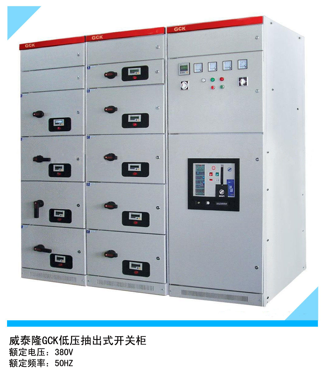 威泰隆GCK低压抽出式开关柜广泛应用于发电厂,石油,化工,冶金,纺织,变电所,厂矿企业和高层建筑的动力配电中心PC和电动机控制中心MCC,作为交流50-60Hz,额定工作电压为660V及以下,额定电流为4000A及以下的发、供电系统中配电、电动机集中控制,无功补偿使用的低压成套配电装置。GCK低压抽出式开关柜在保持了电气性能高于同类产品的基础上,增大了容量和机械强度, 并具有结构先进,外型美观,防护等级高,安全可靠,维护方便等特点;可作为低压成套开关设备的更新换代产品。