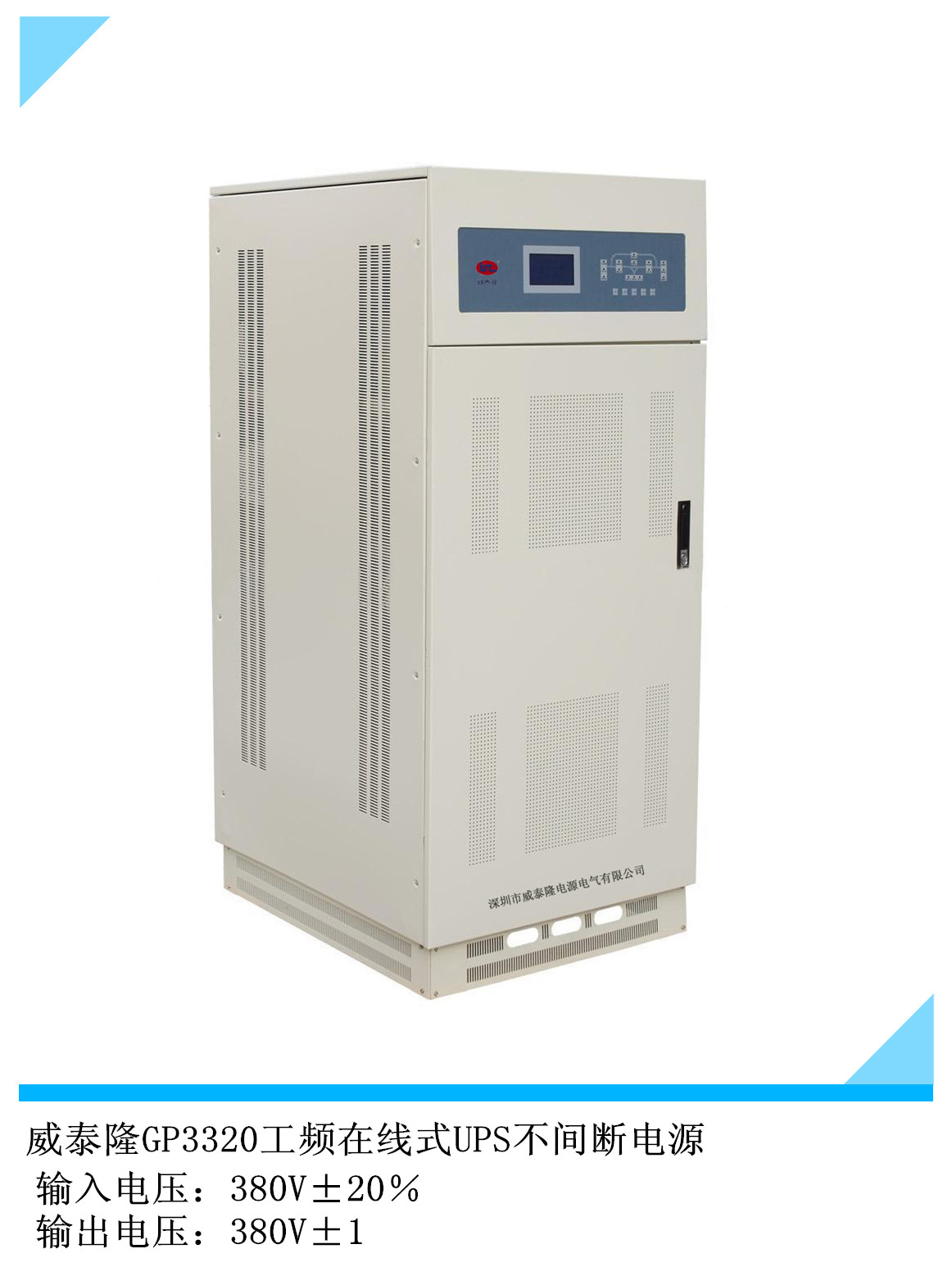 | 名称:不间断电源GP3320工频UPS |  | | 编号:Pro2014111153142 | | 型号:GP3320 | | 价格: | | 厂商:成都市威泰隆电源电气有限公司 | | 时间:2014/1/11 15:33:27 | |  |  | | 威泰隆GP3320三相在线式UPS不间断电源简介