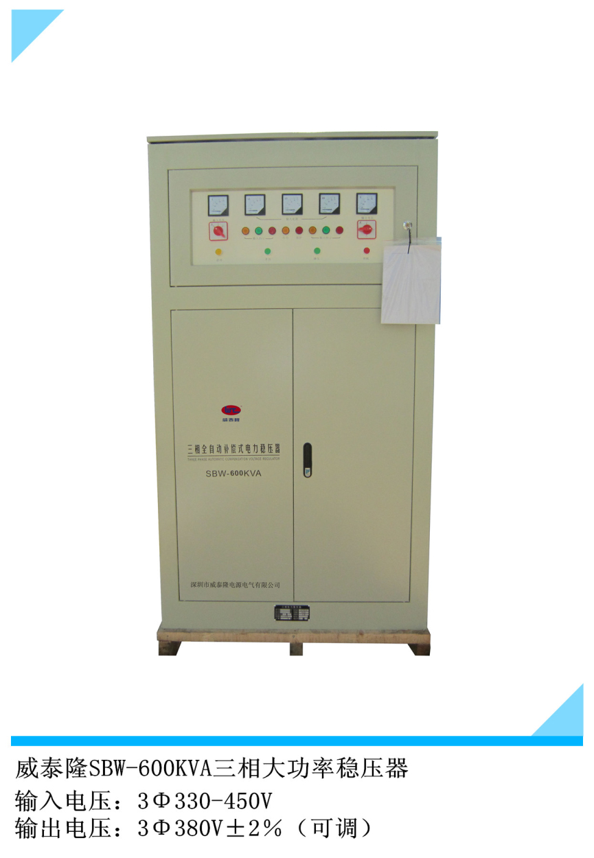 威泰隆SBW系列三相全自动自动补偿式电力稳压器,是我公司引进吸收西欧先进技术,同时结合我国国情,为稳定交流电压而设计。当外界的供电网络电压波动或负载变化而造成电压波动时,能自动保持输出电压的稳定。